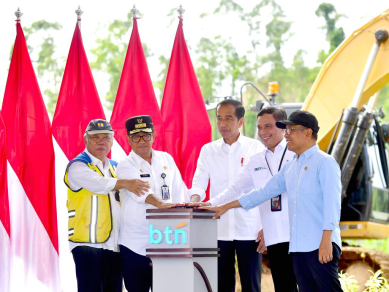 TheIndonesiaTimes, Kalimantan - Presiden RI Joko Widodo (Jokowi) meletakan batu pertama (groundbreaking) Pembangunan Gedung Kantor PT Bank Tabungan Negara Persero Tbk, di Kabupaten Penajam Paser Utara, Provinsi Kalimantan Timur, Rabu (05/06/2024).