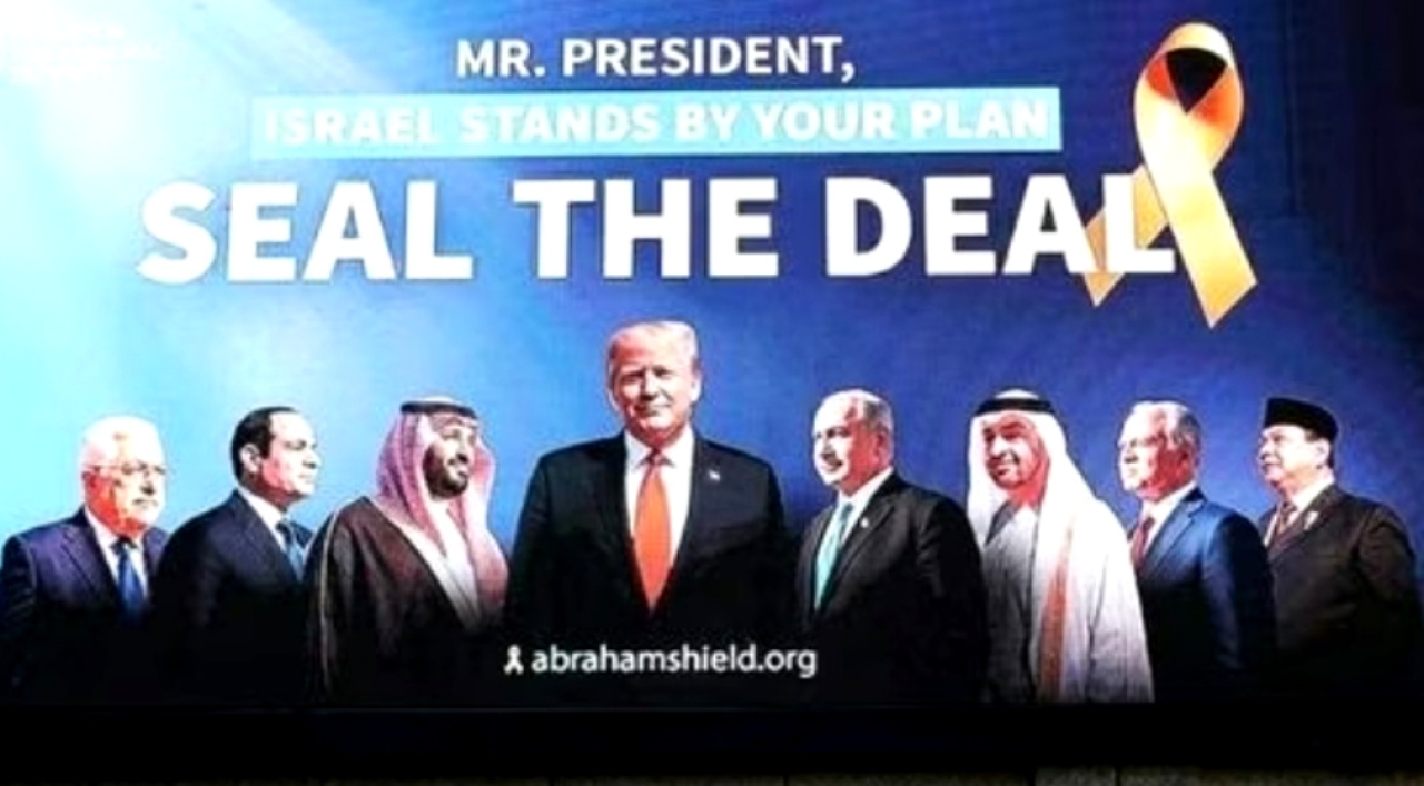 Baliho itu merupakan bagian dari kampanye kelompok “Koalisi Israel untuk Keamanan Regional” yang mendukung rencana Donald Trump untuk mengakhiri konflik di Gaza dan memperluas Perjanjian Abraham. Mereka menilai rencana itu sebagai langkah strategis yang dapat menciptakan tatanan baru di kawasan.