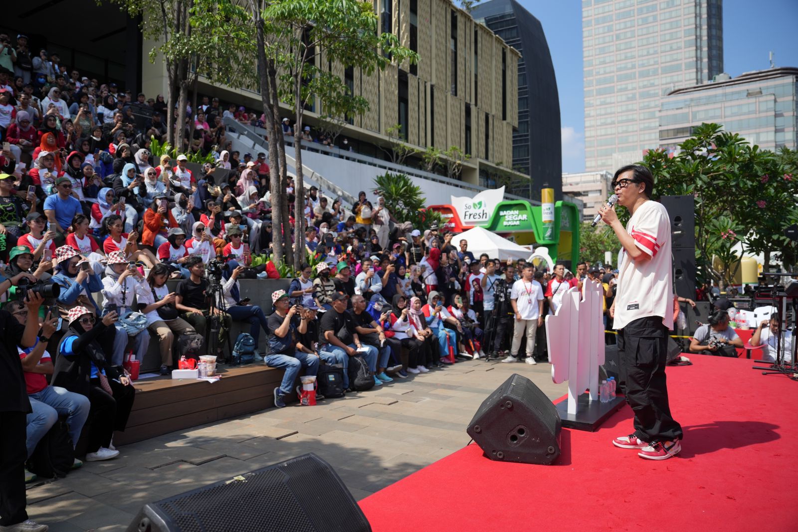 Parade healing walk ini dilakukan sejauh tiga kilometer bersama Armand Maulana dan ratusan warga untuk sekaligus menandai peluncuran produk So Fresh Minyak Angin Aromatherapy.