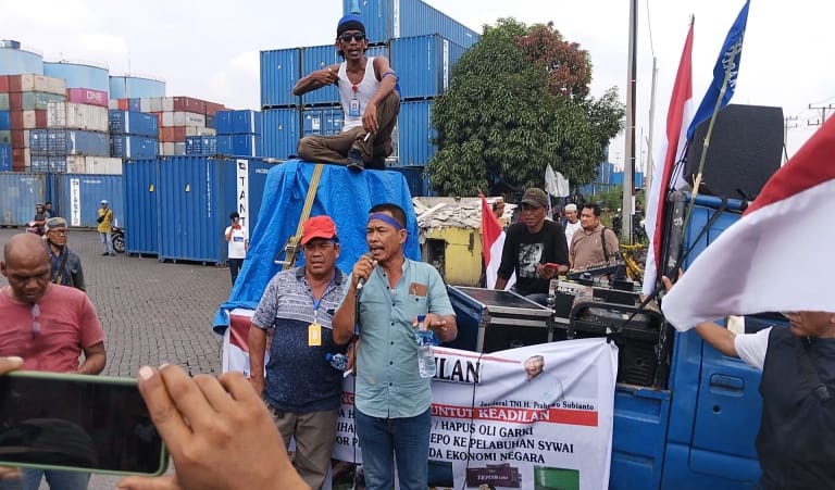 TheIndonesiaTimes - Pengurus Koperasi Jasa Pengemudi Angkutan Khusus bekerja di Pelabuhan Belawan dalam satu wadah gabungan Sentris (Kop. JPAK. PBS) menggelar aksi demo harapkan kesejahteraan para supir bekerja di perusahaan Tanto Cabang Belawan Jalan Raya Pelabuhan Belawan Sumatera Utara, Rabu (31/7/2024).