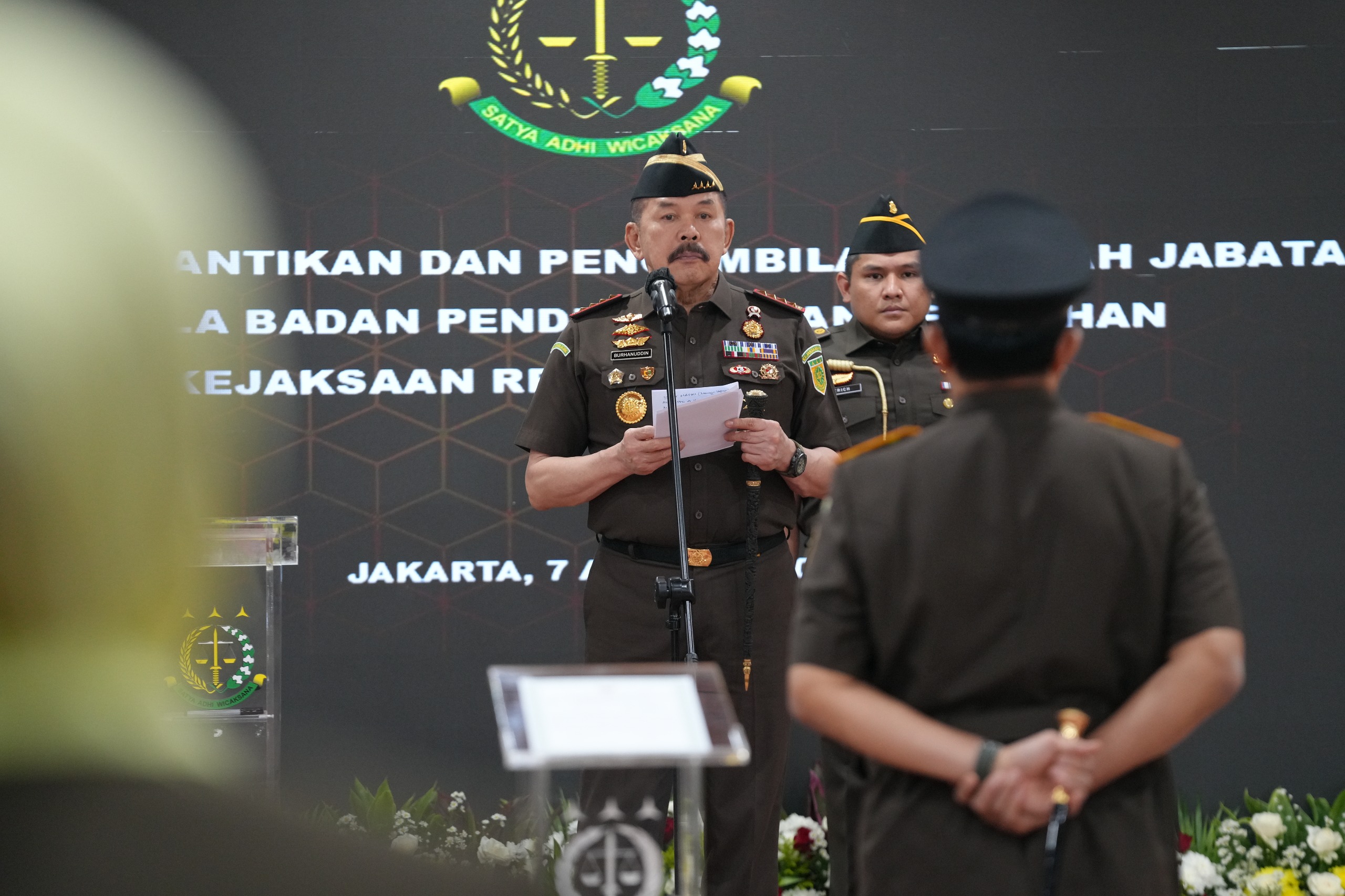 TheIndonesiaTimes - Jaksa Agung ST Burhanuddin memberikan amanat pada acara pelantikan dan pengambilan sumpah jabatan atas Dr. Rudi Margono, S.H., M.Hum. sebagai Kepala Badan Pendidikan dan Pelatihan Kejaksaan RI yang baru menggantikan Tony T. Spontana.