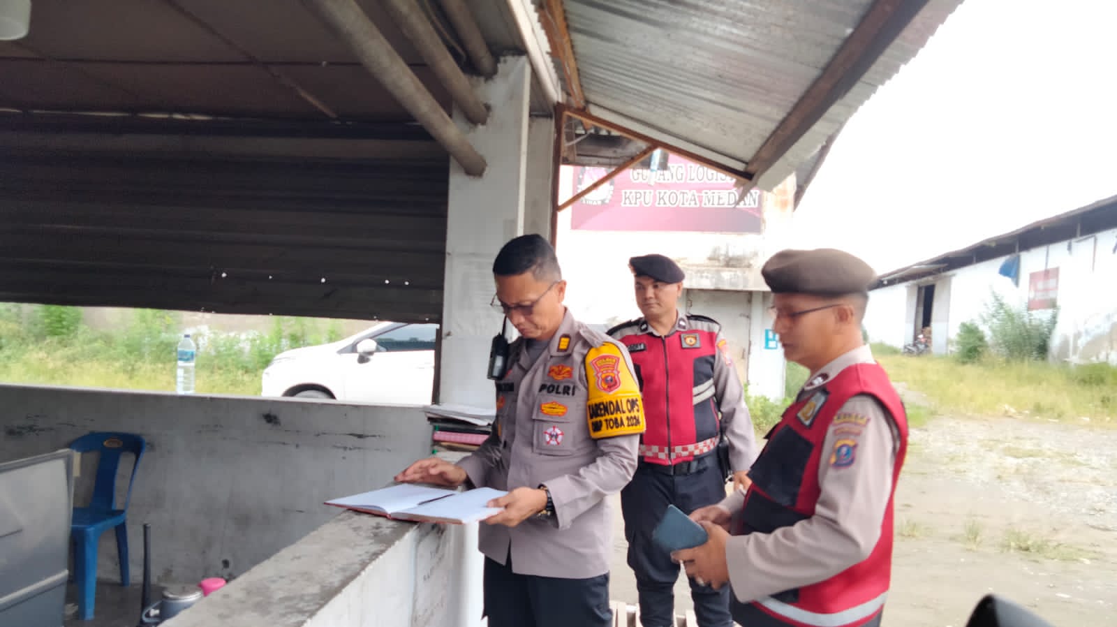 TheIndonesiaTimes - Kabag Ops Polres Pelabuhan Belawan, AKP Pittor Gultom, SH., melakukan pengecekan ke dua lokasi gudang Komisi Pemilihan Umum (KPU) Kota Medan yang terletak di Jalan KL. Yos Sudarso dan Jalan Rumah Potong Hewan, Kelurahan Mabar. Kamis (3/10) dalam rangka melaksanakan Operasi Mantap Praja Toba 2024 dan untuk memastikan kesiapsiagaan personil pengamanan yang bertugas di lokasi gudang penyimpanan logistik pemilu.