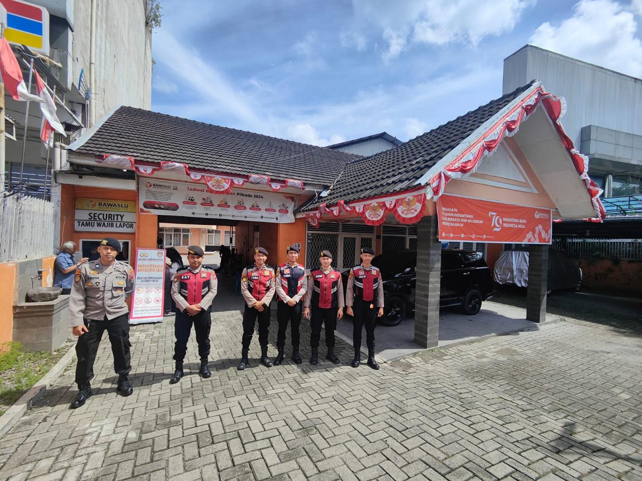 Sekaligus melakukan patroli rutin di sekitar area Kantor KPU dan Bawaslu, petugas juga melakukan pemeriksaan ketat terhadap tamu maupun pegawai yang keluar masuk area kantor.